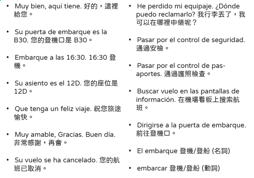 機場最常見的20個西班牙語 發佈留言 / 西班牙旅遊 / 作者: Alicia 單字講義 分享此文: 按一下以分享至 Facebook(在新視窗中開啟) Facebook 按一下即可分享至 X(在新視窗中開啟) X 請按讚:喜歡 正在載入...